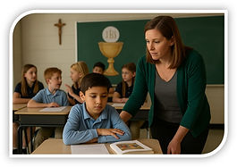 Mateo is a kind and curious Grade 3 student who participates in religion class with his peers but isn’t preparing for First Communion. His family has chosen a different spiritual path, and while Mateo is respectful and engaged, his classmates begin to notice he isn’t doing the same activities. One day during a discussion about the Eucharist, a classmate blurts out, “So Mateo’s not in Jesus’ family?” The comment is met with silence and a wave of discomfort that Ms. Bennett, the classroom teacher, doesn’t brush aside.